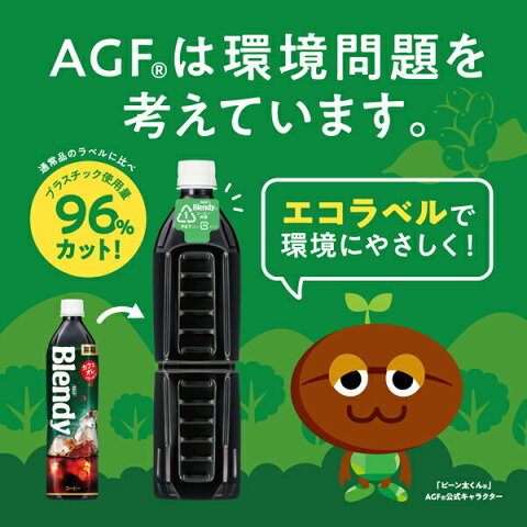 送料無料 コーヒー ラベルレス 無糖 ブレンディ AGF 味の素 900ml ボトルコーヒー 珈琲 通信販売限定 Blendy エコ 4901111408555