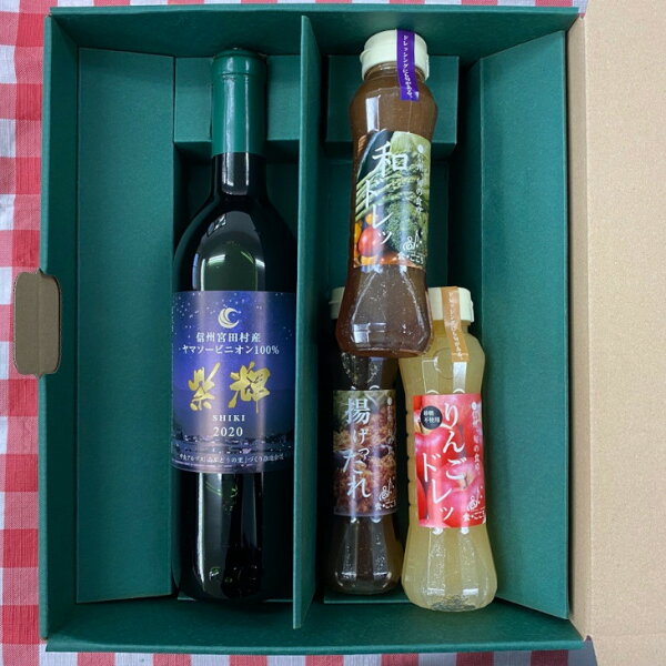 製品仕様 商品名 宮田ワイン「紫輝」と食ごころドレッシングセット 賞味期限 お早めにお召し上がりください 保存方法 常温保管 原材料/商品内容 宮田ワイン「紫輝」720ml、食ごころドレッシング3本 商品説明 ヤマソービニオン種を醸造した山ぶどうワイン。
