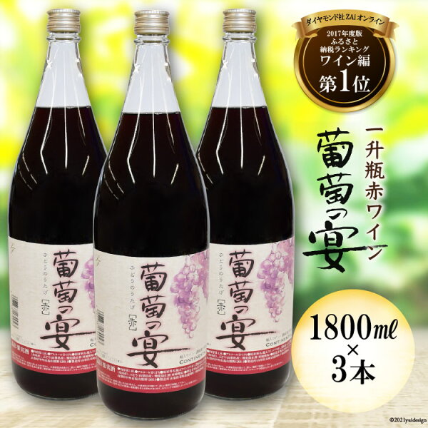 大容量につき日々の晩酌におすすめです! 商品説明 名称 「葡萄の宴」赤 内容量 1,800ml×3本 保存方法 直射日光を避け、常温保管 開栓後はお早めにお召し上がりください。