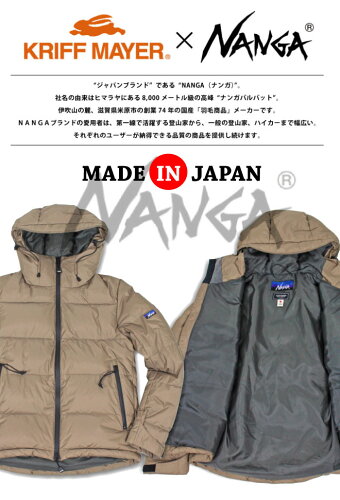 メーカー希望小売価格はメーカーカタログに基づいて掲載しています>>SPEC スペック コメント 大好評のKRIFF MAYER(クリフメイヤー)と国産羽毛メーカーNANGAとのコラボアイテムが今年も登場! NANGAは創業74年の国産羽毛商品メーカーで、寝袋やジャケット、パンツなどの登山アパレルを国内生産しているブランドです。