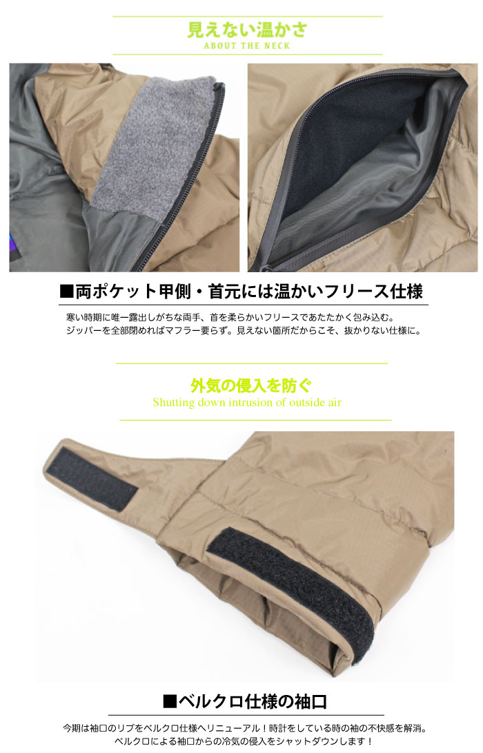 アジャスター機能付きでフィット感の調節ができ、袖口からの冷気の侵入をシャットダウン! デザインも腕まわりを細くし、アウトドアジャケット特有の横に対しての膨らみを軽減してあります。