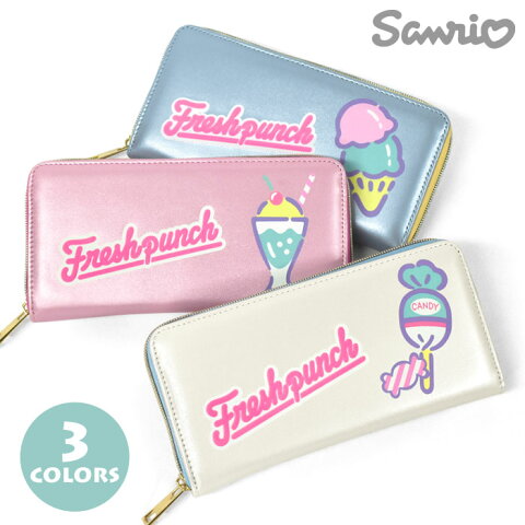 フェイクレザー フレッシュパンチ ラウンドファスナー 長財布 /レディース ラウンドジップ 長サイフ 財布 小銭入れあり 女性 かわいい おしゃれ 無地 シンプル 合成皮革 合皮 革 レザー 雑貨 グッズ Freshpunch サンリオ キャラクター パールシャイン レトロ スイーツ/ p
